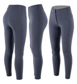 Animo Niera Breeches in white with taupe piping trim are ladies knee patch breeches with a low rise and flexible silicone grip knees. Niera Breeches from Animo have a euroseat seam and flattering back yoke with Animo embroidery logo. The contoured wide waistband has 1.5″ belt loops and offers good coverage in the back.