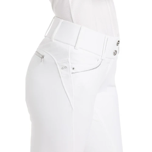 Women’s Ariat Tri Factor X Grip Full Seat Breech for dressage riders has a higher rise, compression, cooling, and a flexible grip seat. The Ariat Tri Factor compression fabric for muscle support is a midweight stretch knit. The fabric features skin cooling technology, moisture management, and core control for core muscles and a flattering fit. All that plus a big of bling and upscale details make the Tri Factor X Grip Breech a big bonus for your dressage wardrobe.