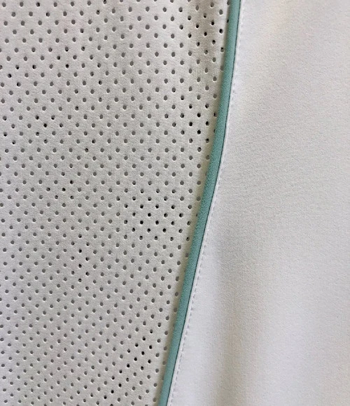 Women’s Cavalleria Toscana Perforated Sides Competition Polo with short sleeves has an impressive array of performance features. The smooth technical jersey fabric is wicking, quick to dry, and antibacterial for odor prevention. The perforated inserts at the sides add ventilation with a contemporary twist. The all-white shirt has light green piping trim and matching CT embroidery on the collar. The White/Teal and White/Navy colors have color side panels.