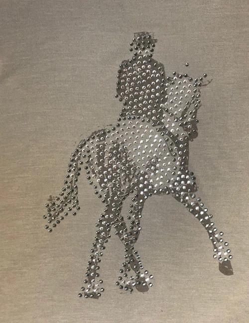 The elegant crystal horse and rider design on the Chestnut Bay Crystal Dressage Top will catch your eye but the dreamy silky soft stretch fabric will capture your heart! The super soft lightweight fabric is almost too good to be true, and yet, here it is, just waiting to pair with your favorite jeans or breeches, Wear it for riding or to express classic equestrian style for your casual wardrobe.