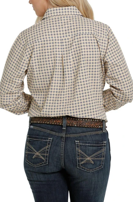 Ladies Cinch ArenaFlex Shirt has classic Western performance style plus super lightweight stretch fabric for incredible comfort. The wrinkle-resistant silky stretch polyester and crisp print will help you look and feel your best in and out of the show pen. The long sleeve button front shirt has a simple, clean profile with a straight back yoke and box pleat for extra range of motion. A tapered profile and bust darts keep the fit flattering and feminine.