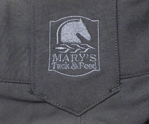 The Mary’s Signature Breeches are found only at Mary’s Tack & Feed! Our exclusive Mary’s Signature Breech is a women’s euroseat knee patch riding breech with flexible silicone grip knees. The low-mid rise waist flatters many figure types and the wide waistband is comfortable and perfect for all your favorite wide riding belts. Ladies knee grip English breeches are a performance stretch fabric that is lightweight, breathable, moisture wicking, and quick drying. The Mary’s Signature Breech has a stretch sock at the ankle with the Mary’s Tack & Feed logo knitted right in. So cute! The back waistband has a wide center belt loop with tonal Mary’s Tack & Feed logo embroidery.