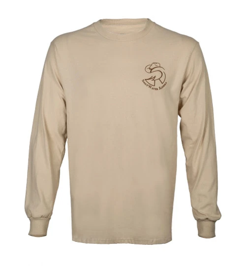 Men’s SaltWater Riders Bronc T-Shirt in Sand is a unique design with no side seams. The neck tag is printed, so the inside of the shirt is completely comfortable. This shirt is easy to wear for riding and relaxing and the cotton/poly blend fabric is lightweight without being flimsy. Women can, of course, wear the SaltWater Riders Bronc T-Shirt if they go down a size from what they usually wear in ladies tops.